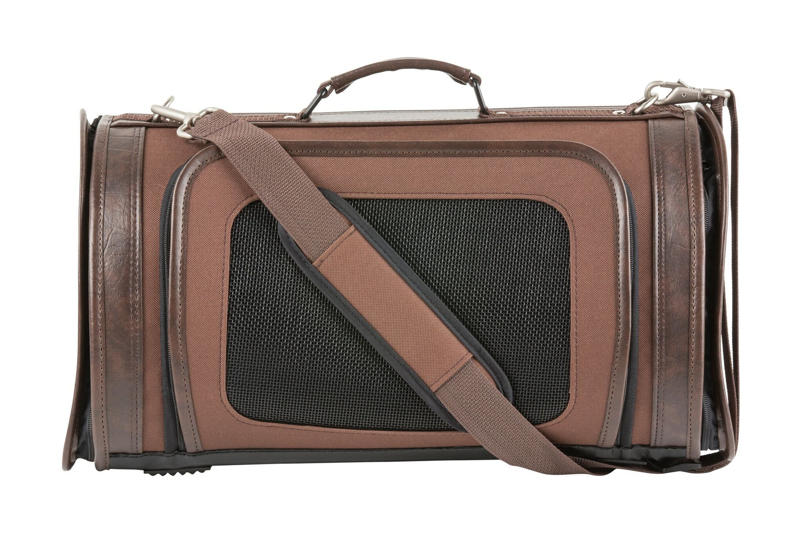Front and side ventilation windows, adjustable padded shoulder strap that also can be used as a leash, non-collapsible, custom hardware, made in the USA, airline approved, detachable fur lined pad. This carrier is also equipped to be used as a kennel when traveling with your pet. It’s a home ways from home! Small 14”L X 8”W X 9”H, weight capacity 6 lbs. Large 18”L X 9.5” W X 10”H, weight capacity 15 lbs.