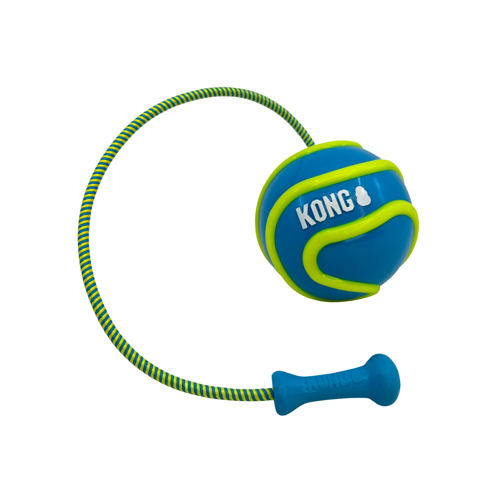 The KONG Bunji High-Viz Ball is specially designed with bright, high visibility colors for various environments, weather, and terrain. Ideal for fetch-and-retrieve play, this durable ball has raised ridges that create an unpredictable bounce, and an ergonomic bungee cord rope that effortlessly launches long distance, saving your shoulder from burnout! Glow-in-the-dark ball and handle make this toy perfect for playing after the sun goes down and on gloomy days—and it even floats in water! Charge the ball & handle under a lamp or in the sun for 15-20 minutes to activate glow-in-the-dark feature.