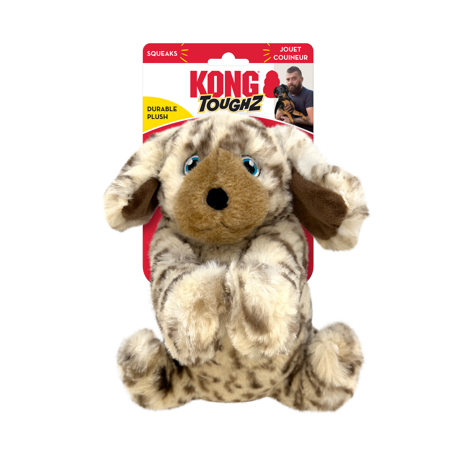KONG Toughz are tough, squeaky, and snuggly, all wrapped up in one toy! Thrashing, shaking, and biting are no match for these super-durable plush toys, with an enticing double squeaker—one inside the other—that excites dogs’ play instincts. Ideal for bringing outdoor energy inside on cold and rainy days, and perfect for cuddling after rounds of romping. Toughz medium size is perfect for most dogs.