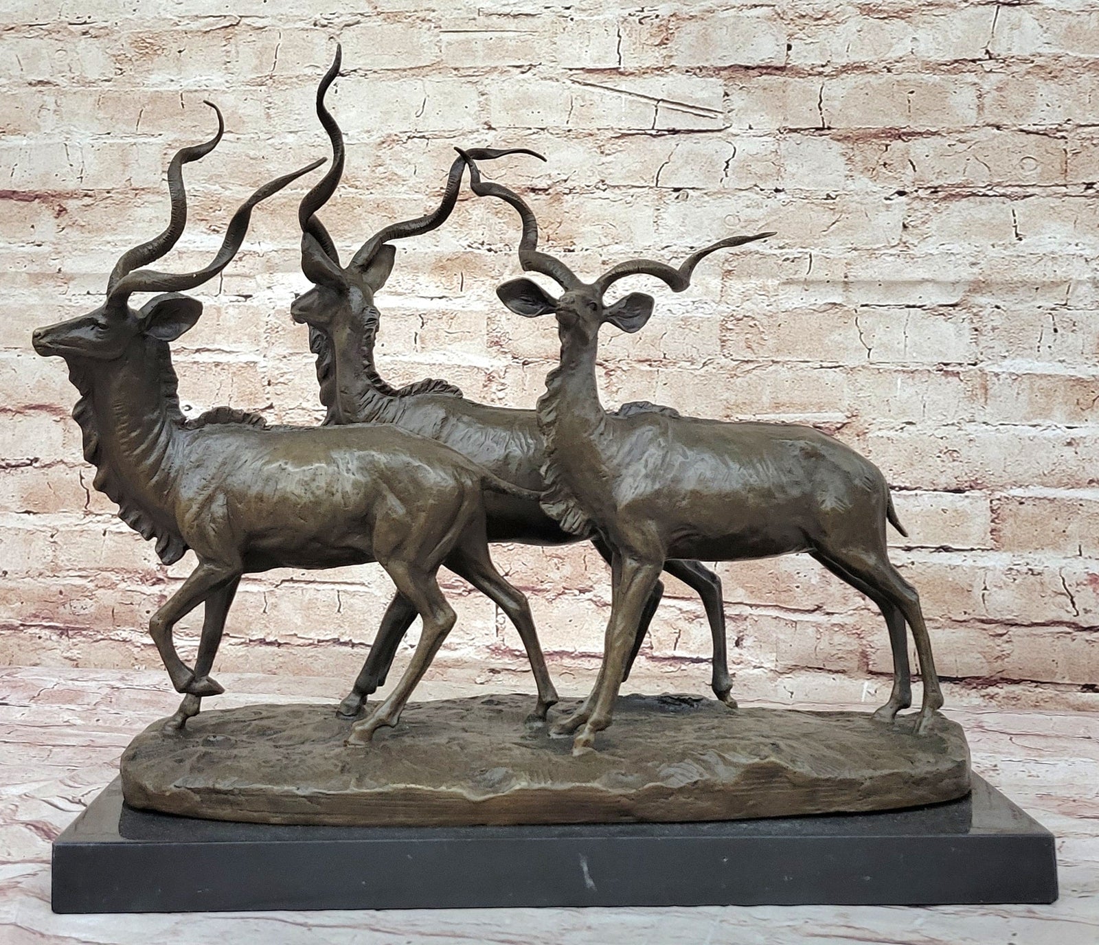 Step into the untamed beauty of the African savannah with the "Kudu Antelope Family" bronze sculpture, a captivating masterpiece by the skilled artist Milo. Crafted with meticulous detail using the time-honored lost wax method, Milo's expertise breathes life into bronze, creating an evocative portrayal of a gazelle family. The graceful curves and intricate features of the Kudu Antelope showcase Milo's commitment to capturing the essence of these majestic African deer.