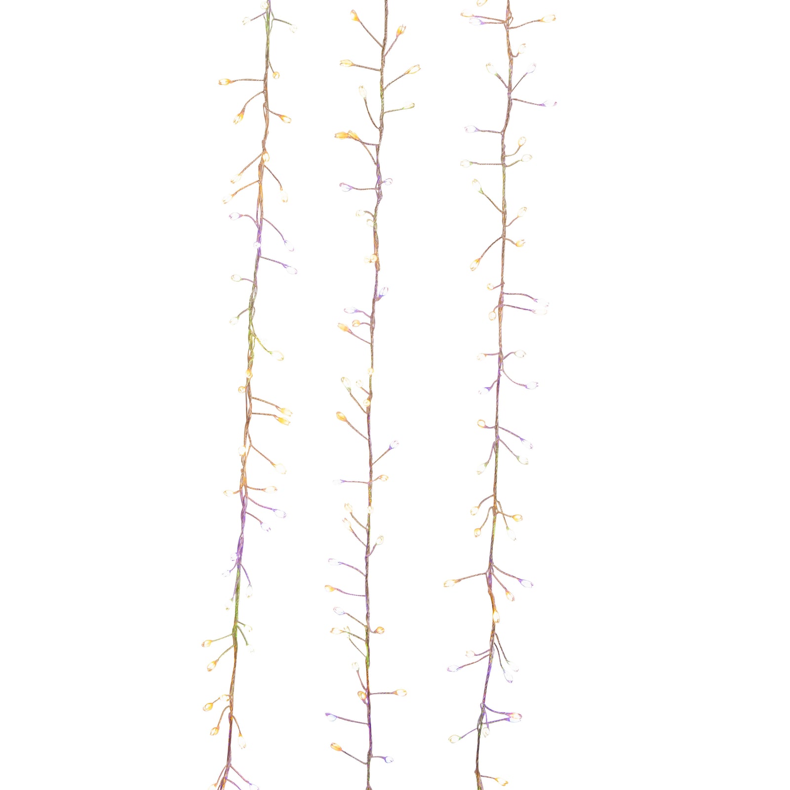 Kurt Adlers 300-Light 9.8-Foot Dual Color LED Cluster Garland is a great addition to any lighting decor! This garland features a multi-function light display with the ability to connect up to 3 garlands for modern addition to your home holiday lighting decor. This LED cluster garland includes 9 functions: combination, warm white steady, multicolor steady, warm white slow glow, multicolor slow glo, sequential, twinkle, slow fade, combo slow glow (warm white and multicolor).