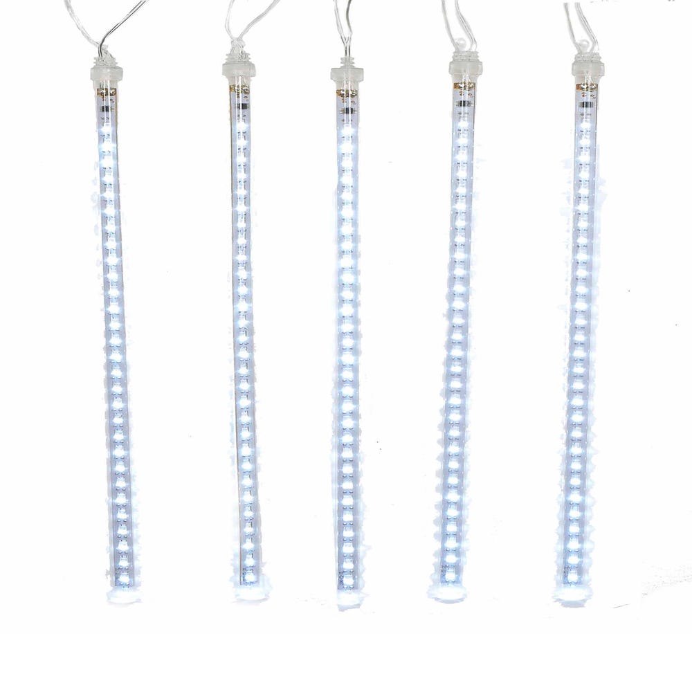 This Kurt Adler 7.85-inch 5-light snowfall light set gives off a fun illusion of having bright snow fall down outdoors year-round! Each light looks as if it "falling" down like a snowflake. This set comes with an adaptor and has 12-chips per tube (60 lights in total). This set also features a 72-inch lead wire and 19.68-inch spacing.