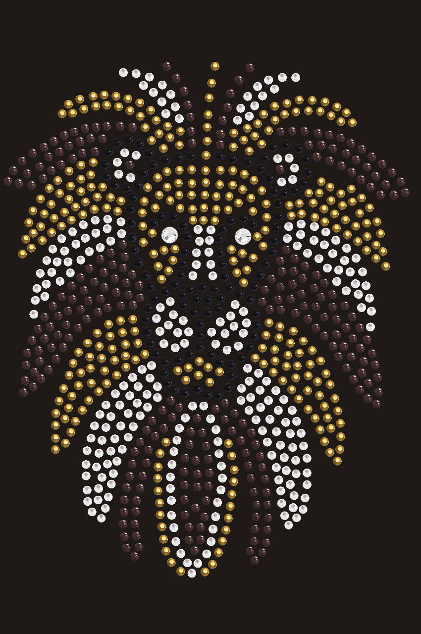 • 3.75" X 4.75" (small) & 5.5" X 7" (large) design with gold, brown, silver, & black rhinestuds.