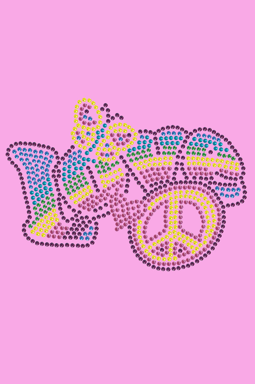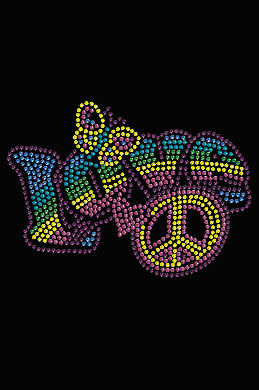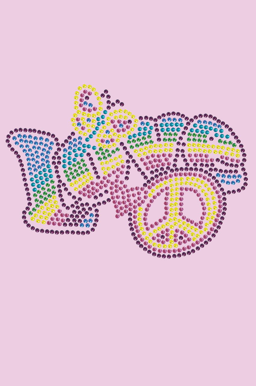 • 5" X 3.5" design with purple, pink, green blue, yellow turquoise rhinestones & rhinestuds.