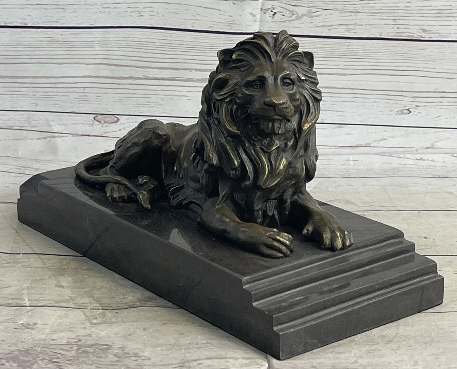 Crafted using the revered lost wax method, this sculpture captures the intricate details of the lion's magnificent form with remarkable precision. The rich bronze finish enhances the sculpture's lifelike appearance, accentuating the play of light and shadow on the powerful muscles and expressive features of the lion's face. It stands proudly upon a sleek black marble base, providing a striking contrast to the bronze sculpture while adding a touch of elegance to its presentation.