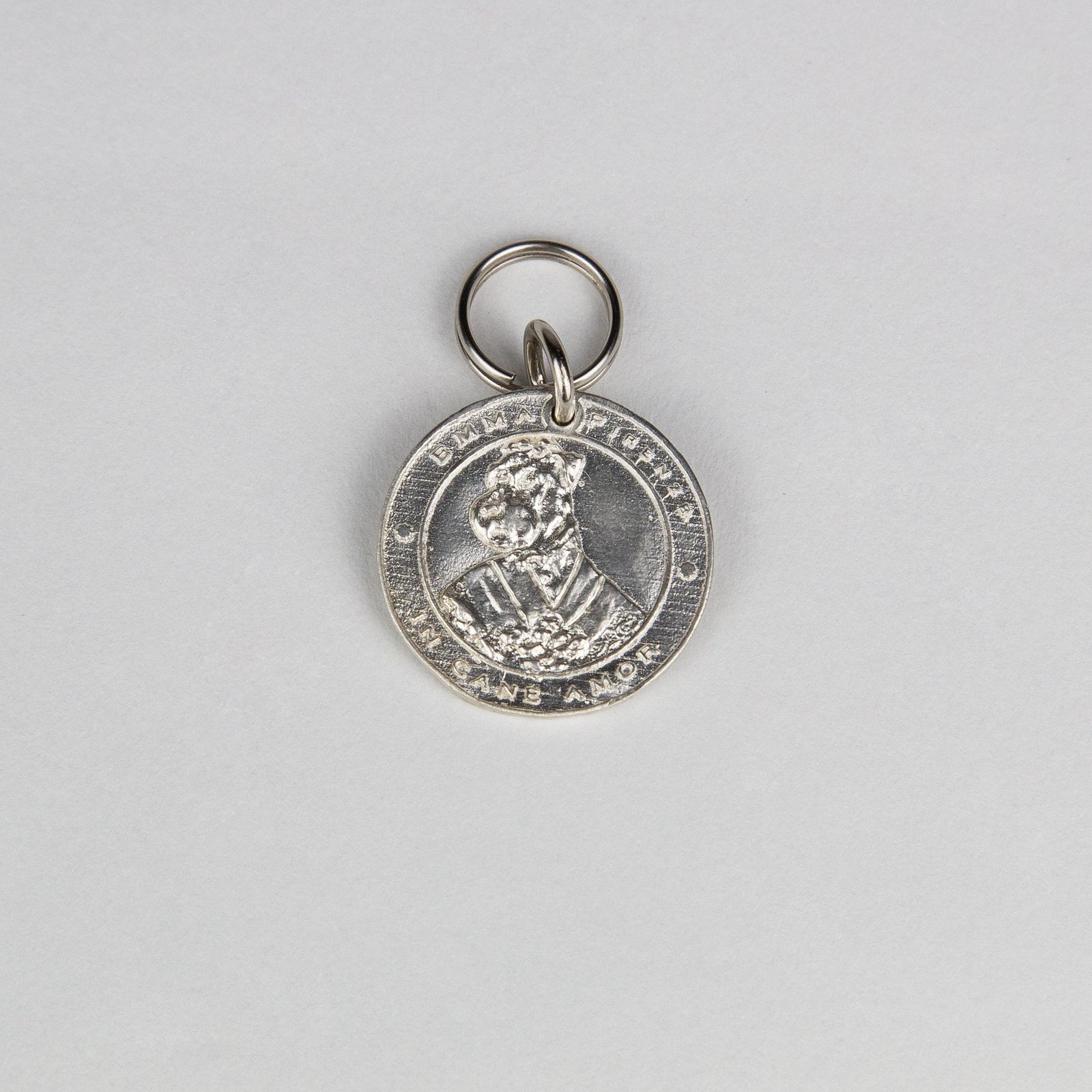 Sterling silver medallion tag with a vintage look created by jewelry designer Francesca Caltabiano(awarded by Luxury Lifestyle as 2017 best Tuscan jewelry designer), in collaboration with EMMA Firenze. One face is engraved as shown. On the other side you can customize the inscription with your dog's name, data or anything you wish for a maximum of 20 characters. A nice and ironic way to represent our four-legged friends as 'Aristodogs,' portrayed in artful settings, inspired by eighteenth and nineteenth century aristocratic Victorian costumes, with lace, embroideries and military uniforms. There is a female version (Margaret) and a male one (Edward). A unique, original jewel that reveals a great personality of the one who wears it. The perfect present for you and as well as your four-legged friend!