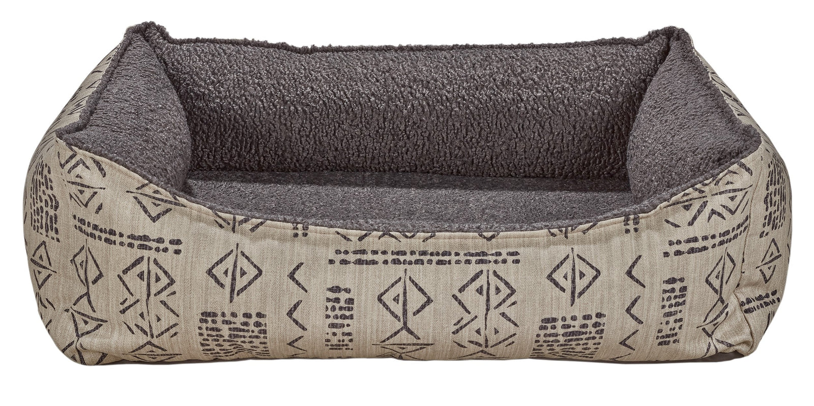 Easy entry scooped front design combined with cool gel memory foam support. The memory foam cushion insert is infused with Cool Gel Micro Beads which helps regulate body temperature. Elegant two-tone fabric combination and European style "pinched edge” trim. Generous sizing maximizes sleeping area.
