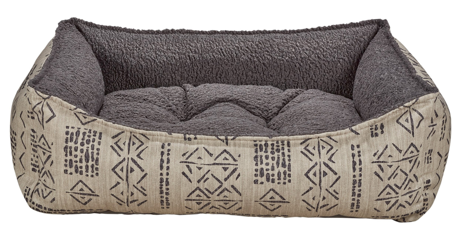 Easy Entry, Scooped Design! Stylish two-tone fabric combination and European style "pinched edge" trim detail. Removable tufted center cushion. Generous sizing maximizes sleeping area. Great design for older or arthritic dogs.