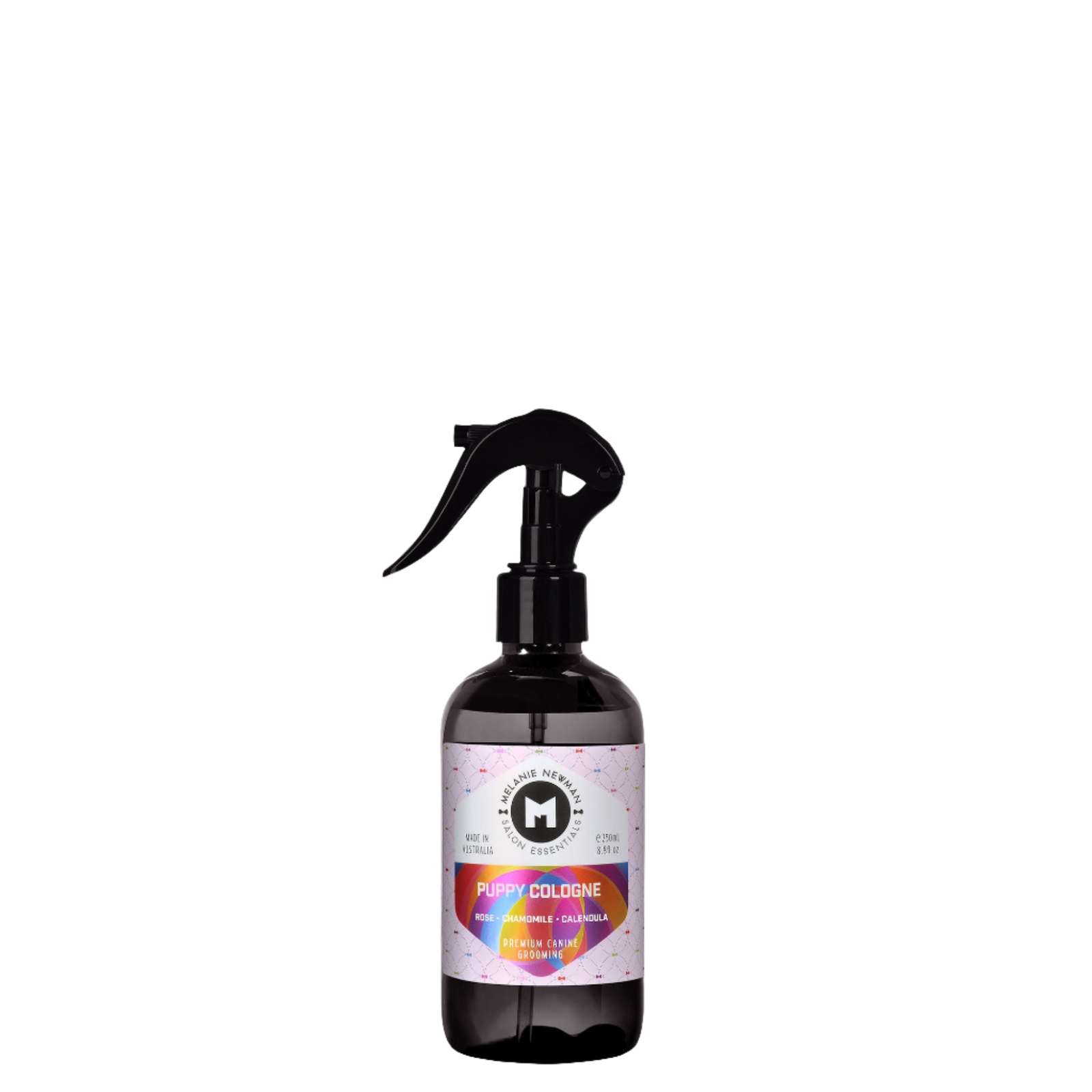 Melanie Newman Puppy Cologne is formulated with natural plant-derived ingredients and pleasantly scents the coat with odor fighting and calming properties. Infused with luxurious organic essential oils of Rose, Aloe Vera leaf juice, Chamomile Calendula coupled with licorice root and coconut oil Puppy Cologne is a hydrating spray using therapeutic grade essential oils to use on coats in between, after a bath, or on bedding Free from harsh synthetic chemicals like SLS, parabens, and petrochemicals, derived from all natural and organic based ingredients Puppy Cologne is perfect for all breeds and coat types of dog Trialed and tested in some of Australias leading professional grooming salons Leaves dog with a soft, silky, and fresh-smelling coat with a natural shine 250 ml Made in Australia to see all Fragrances to see all Melanie Newman products.