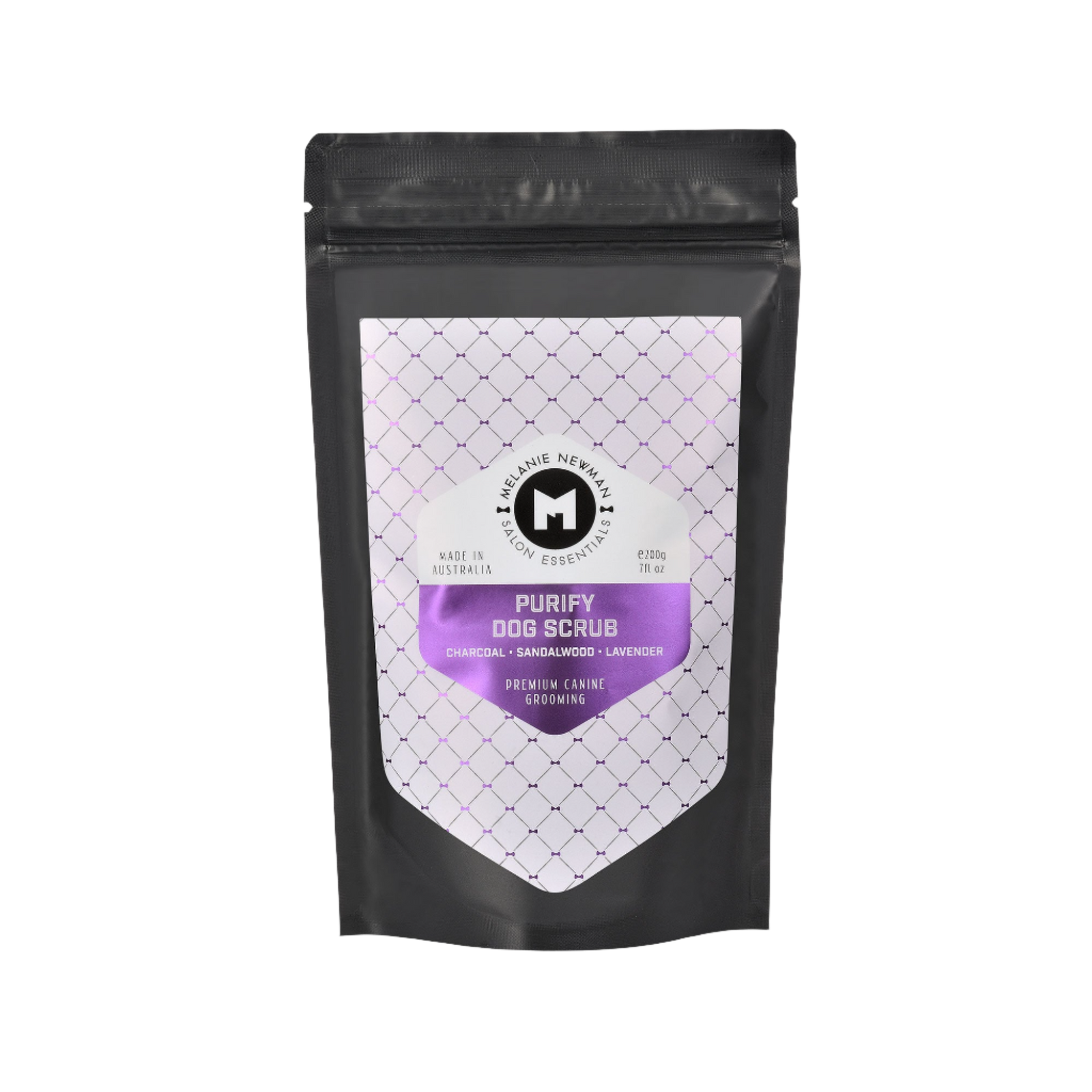 Melanie Newman Purify Scrub is a luxurious purifying treatment designed to exfoliate a dog s dead skin cells and helps to remove the dead coat. Infused with Activated Charcoal, Sandalwood, Lavender and sea salt Draw out any pollution and toxins from dog s coat and skin Purify scrub is perfect for all breeds and coat types of dog Free from harsh synthetic chemicals like SLS, parabens, and petrochemicals, derived from all natural and organic based ingredients Activated with Charcoal for its toxin adsorption powers Trialed and tested in some of Australias leading professional grooming salons Cleans and balances the canine skin with optimal coat conditioning and shine Leaves dog with a clean, and fresh smelling coat with a natural shine 200 gram Made in Australia to See all Masks Special Treatments to see all Melanie Newman products.