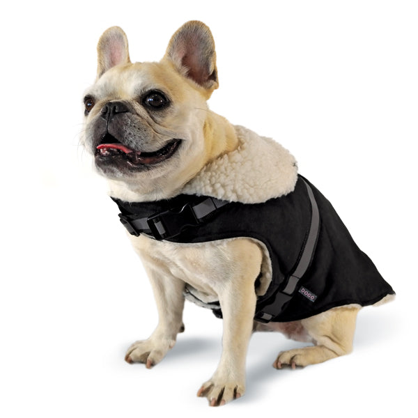 Securing the coat is easy with Velcro closures and reinforced buckles on the collar and waist. For convenient leash attachment, weve included a sturdy D-ring. Embrace the chic and functional design of this well-crafted harness coat, making outdoor adventures both stylish and secure for your pup!