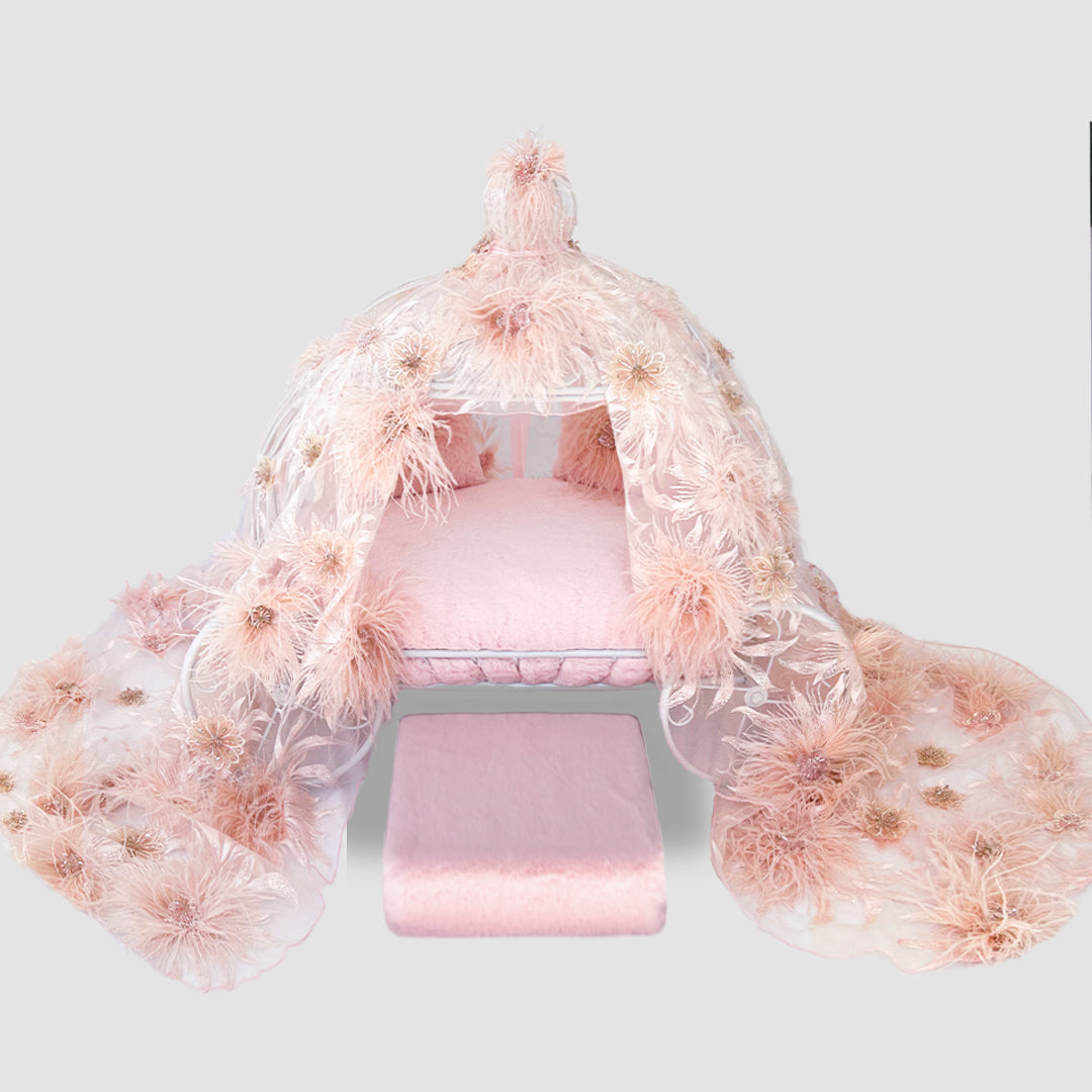 Introducing the epitome of glamour and indulgence, Moulin Rouge Luxury Dog Carriage by Hello Doggie. This exclusive carriage bed is not just a piece of furniture, but a statement of lavishness and extravagance for your beloved furry companion. Like a precious gem in a collection of fine art, each carriage in this one-of-a-kind collection is meticulously designed and handmade to perfection, ensuring that your baby has a bed that is truly unique and breathtaking. The bed is adorned with luxurious details, from the gentle fabric that cocoons your pet in comfort to the meticulously placed small embellishments that exude elegance and charm. Let your furry royal rest in style and comfort with the Moulin Rouge Luxury Dog Carriage, where every nap becomes a dreamy escape into a world of opulence.