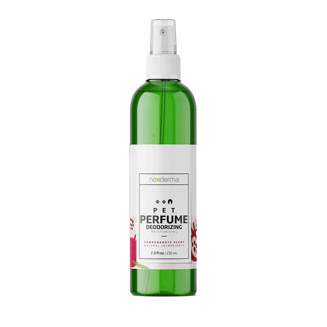 - Nexderma Pomegranate Pet Perfume hydrates and deodorizes the skin and coat leaving dogs with a light natural Pomegranate scent between baths