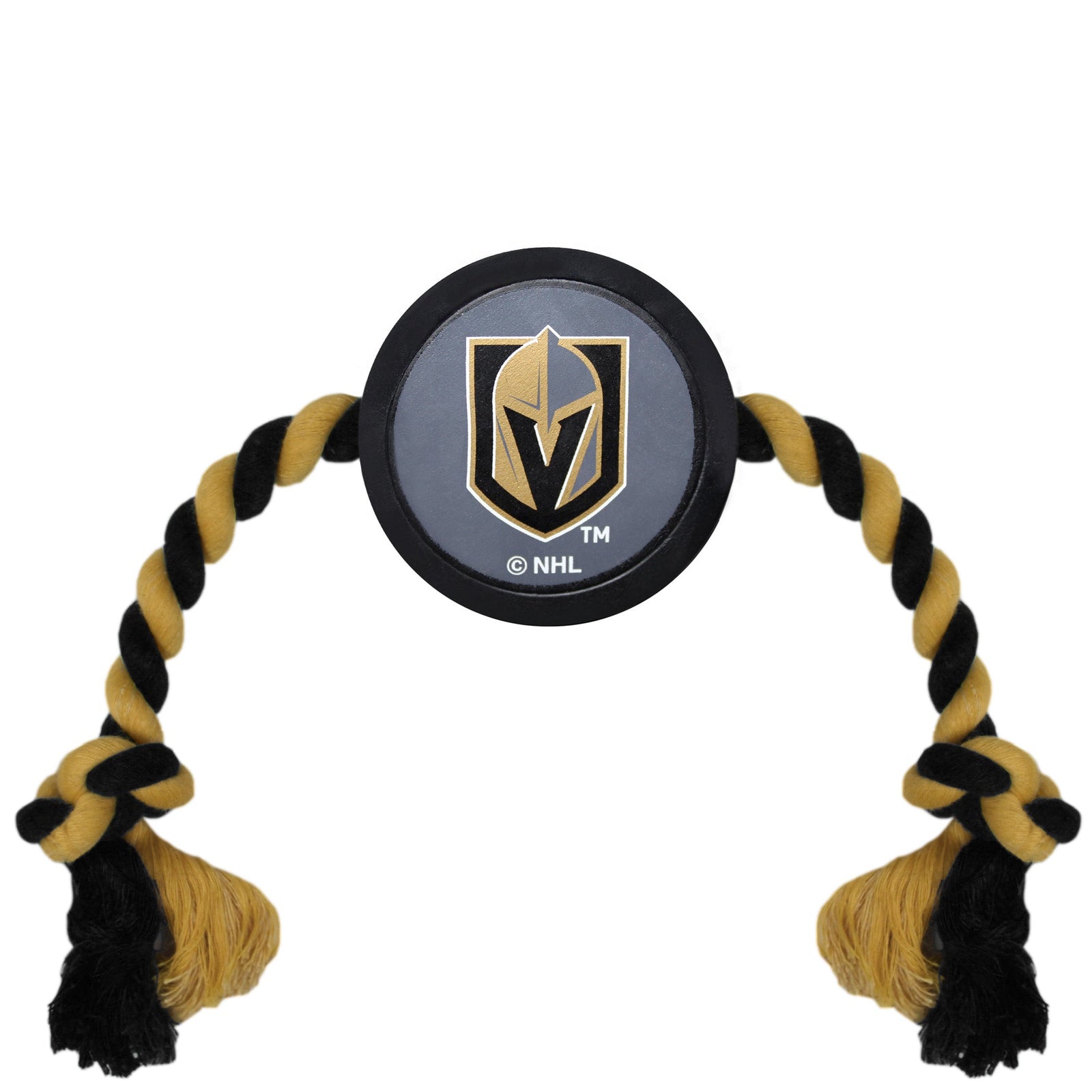 NHL team hockey puck & rope pet toy! Made from durable fabrics designed for your pets comfort.