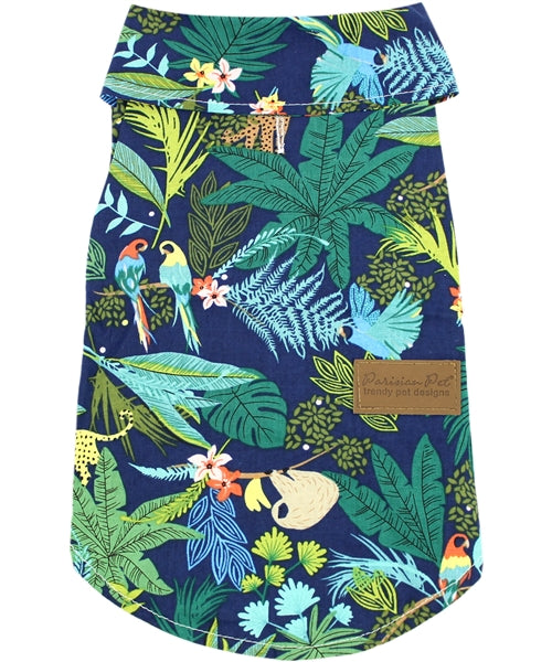 With embroidered pet shirts detailing, this stylish pet shirt will make your pet stand out. The dog summer clothing style keeps them cool while offering a fashionable look. Available in green and blue, the Parisian Pet dog clothing collection brings the perfect mix of comfort, fashion, and functionality to your pets wardrobe. Make your pet the center of attention with the Amazonia dog shirt!