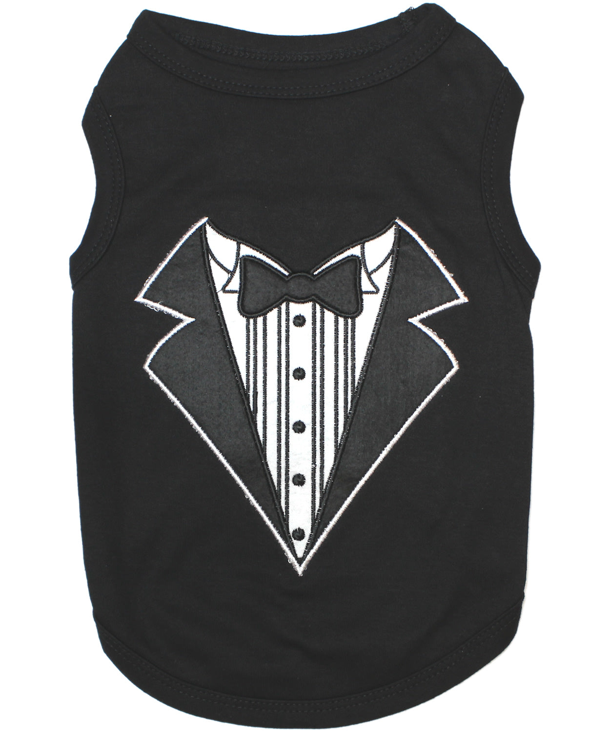 As part of the Parisian Pet formal pet clothing collection, this embroidered pet t-shirt offers durability and elegance. Its wedding dog outfit design makes it the perfect choice for pets who love to be the center of attention. Dress your furry friend in style with this charming black tuxedo dog shirt and let them steal the show at any event!
