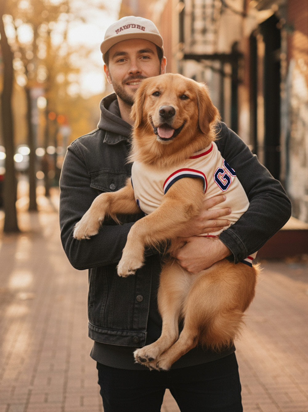 For the ultimate Pawdre — a varsity themed embroidered hat for cool dog dads.