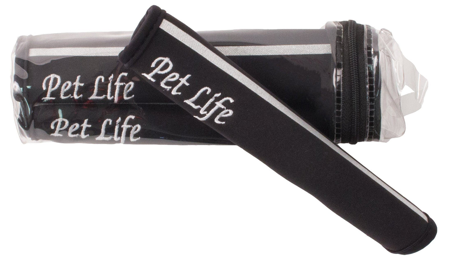 The Extreme-Neoprene Patented Joint Protective Reflective Pet Sleeves are composed of lightly flexible Neoprene. These Pet Sleeves are perfect for all pets in operation recovery and further help prevent joint operation. These sleeves are designed and engineered to place less stress on your pets knee joints and are essential for all older dogs, puppies and even cats. Features Surroundable Reflective Lining for added protection during night walk and are perfect for those active dogs. Features Hook-and-Loop closures for easy On and Off access. Comes as a set of 4.