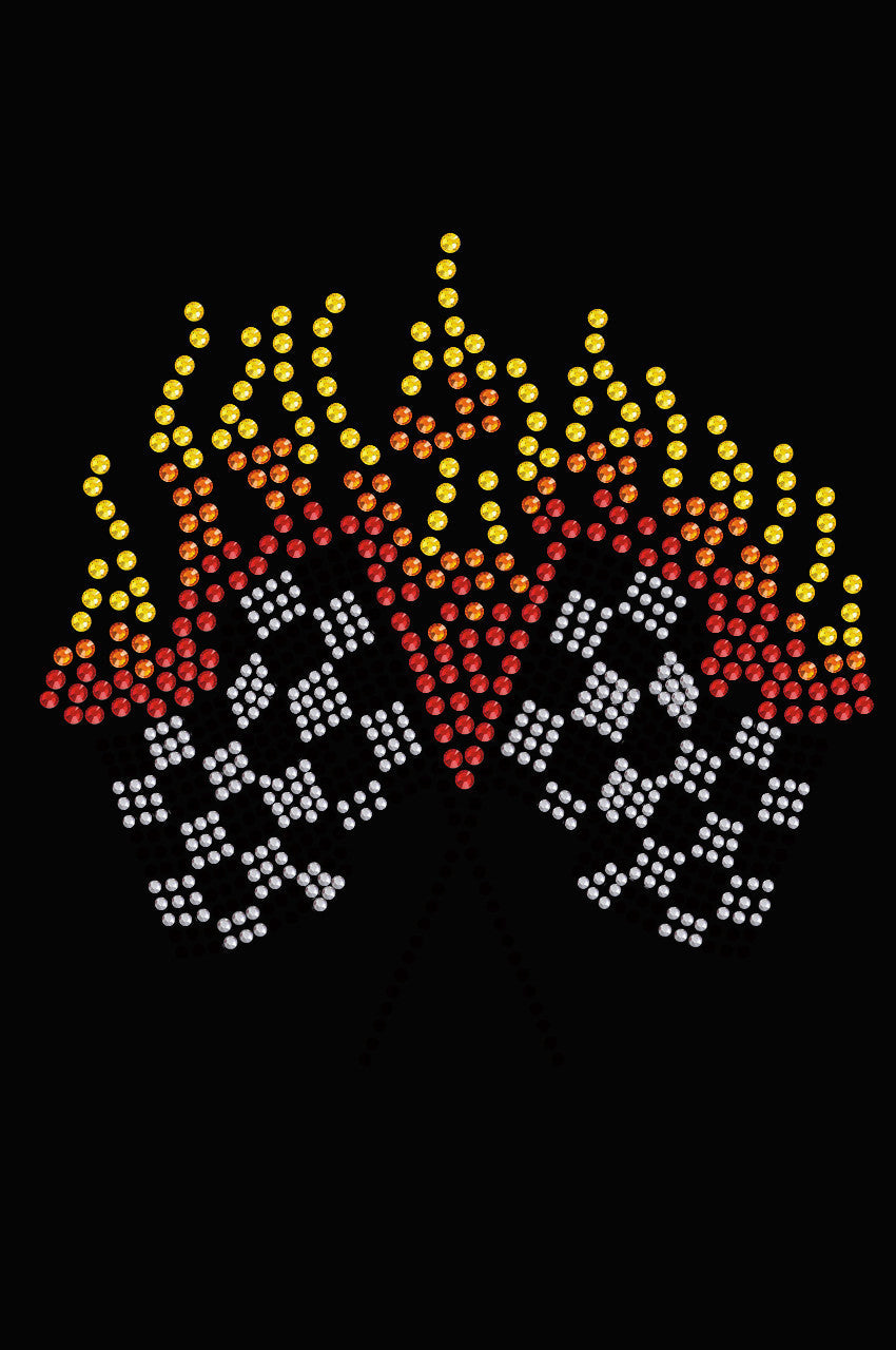 • 5.5" X 5" design with orange, yellow, red, silver,& black rhinestuds & rhinestones.