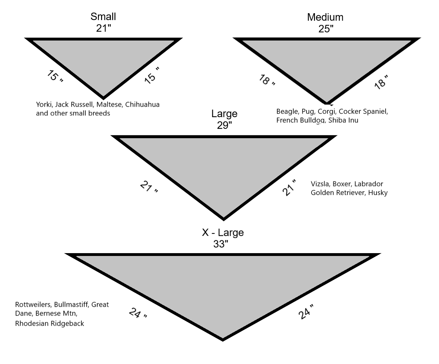 How to Use: For large dogs just tie around neck, smaller dogs roll down the top edge to make smaller and tie around neck, leaving a few inches for comfort. Wear bandana in front of chest or to the side or laying on dogs back – you choose the look!
