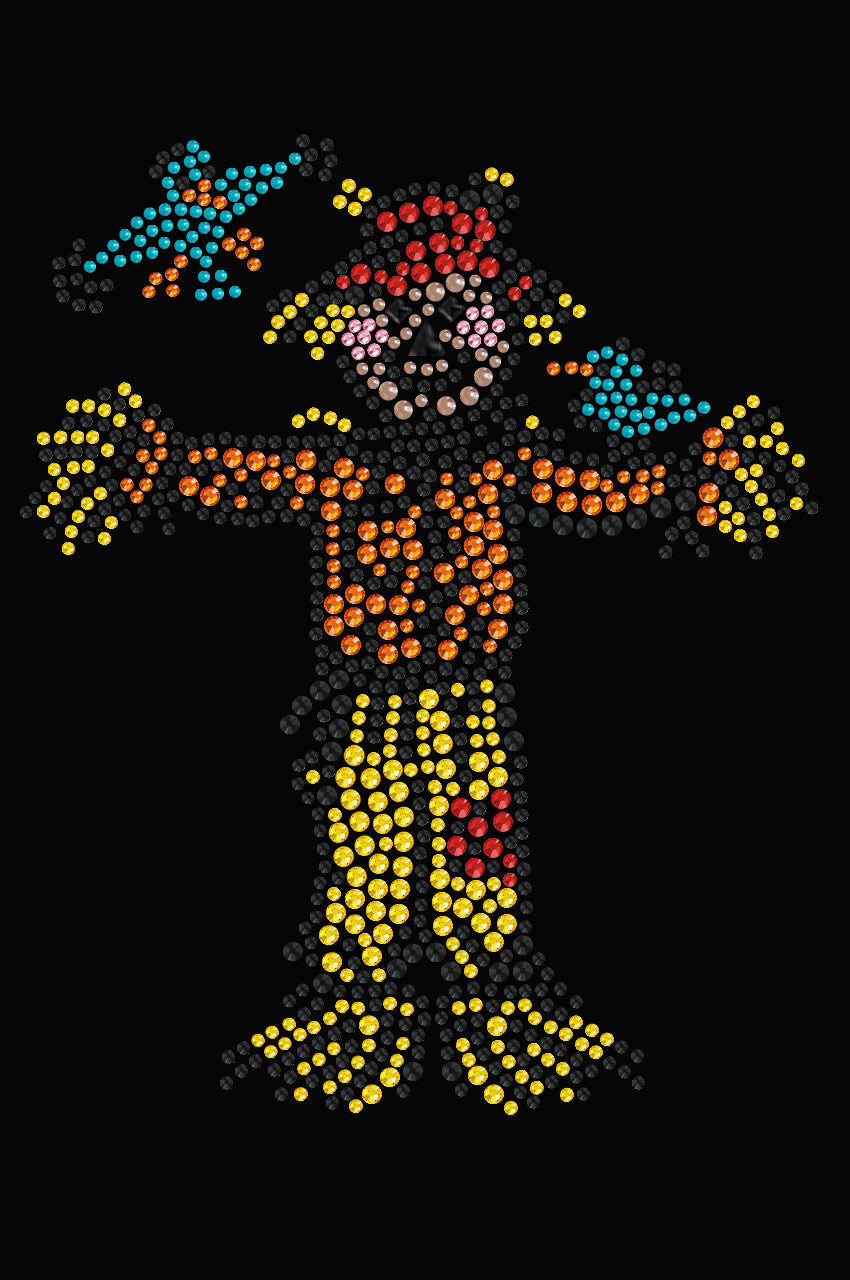 • 5" X 6" design with black, yellow, orange, blue, & red rhinestones & rhinestuds.