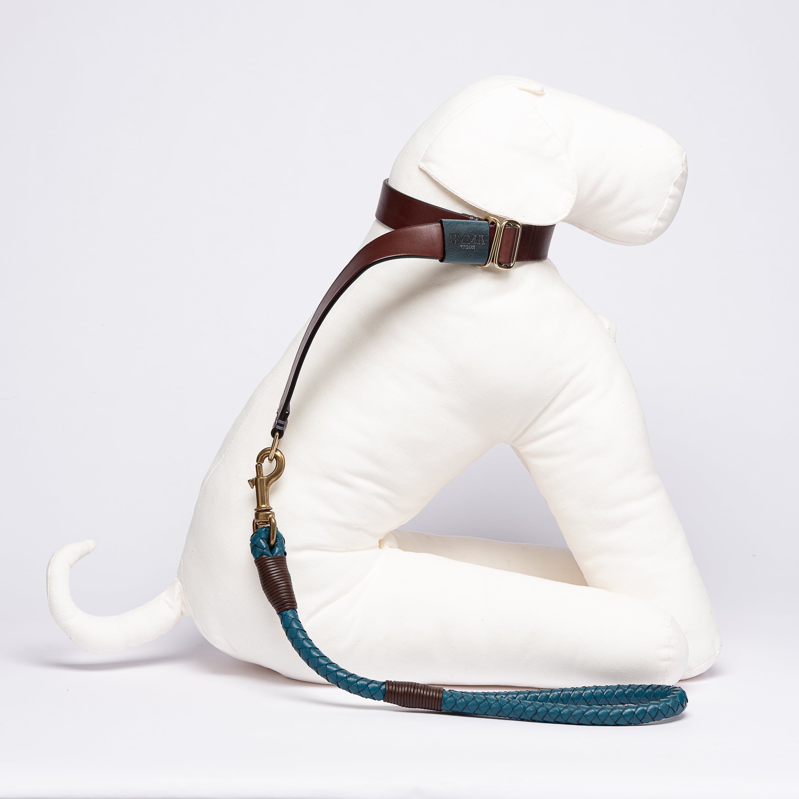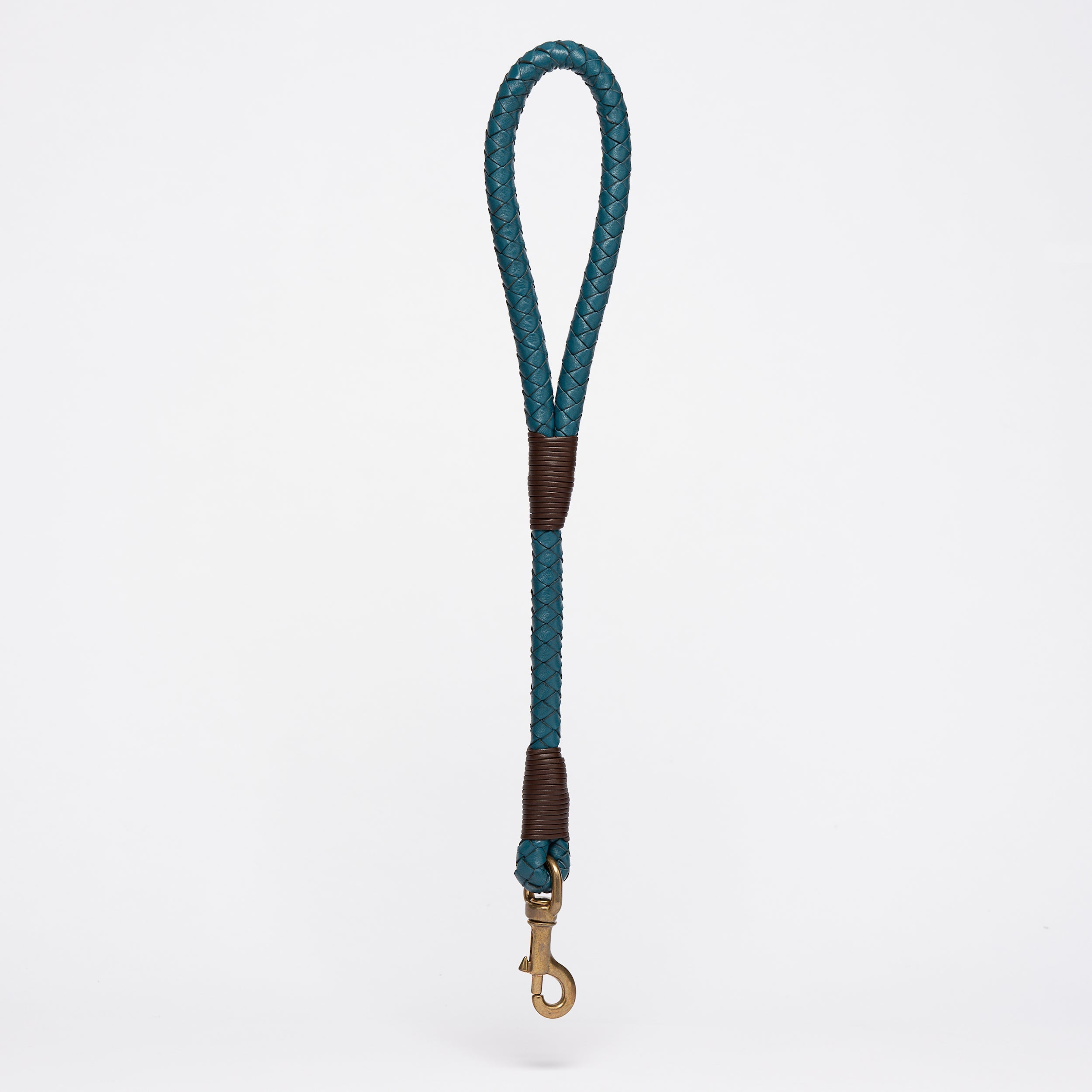 Designer Leash for dogs made of refined hand-woven teal blue cowhide leather with a strong core. Equipped with an excellent grip, pleasant to the touch and safe even for the most exuberant dogs that can surprise you with a sudden pull.