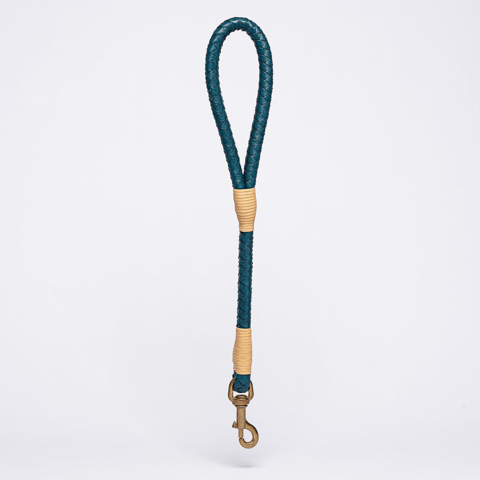 Designer Leash for dogs made of refined hand-woven teal blue cowhide leather with a strong core. Equipped with an excellent grip, pleasant to the touch and safe even for the most exuberant dogs that can surprise you with a sudden pull.