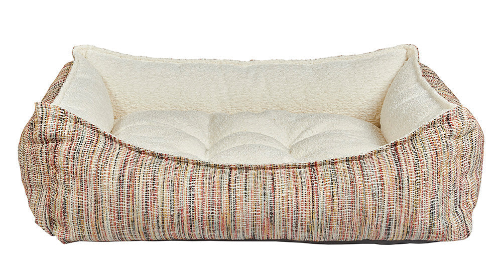 Easy Entry, Scooped Design! Stylish two-tone fabric combination and European style "pinched edge" trim detail. Removable tufted center cushion. Generous sizing maximizes sleeping area. Great design for older or arthritic dogs.