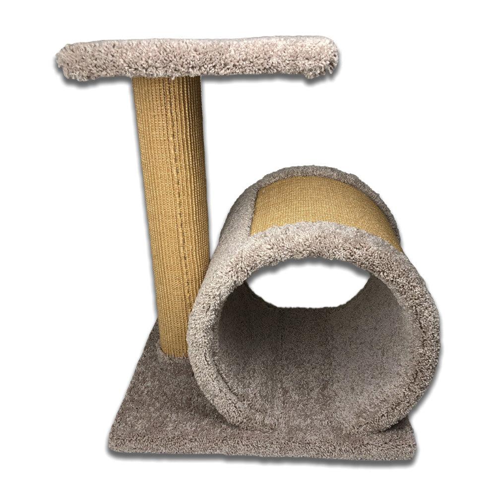 The T1D1 Scratching Tunnel with Deck features 100% all natural sisal carpet; the ideal and recommended scratching surface for cats. Multi-functional: Scratch, Play, Hide and Rest! Carpet color may vary. Usually comes in neutral color tones
