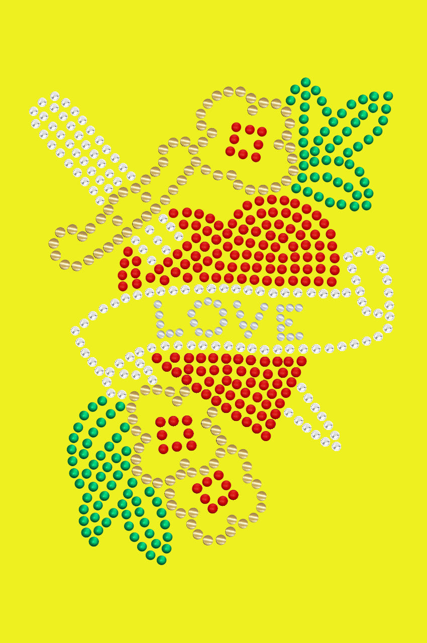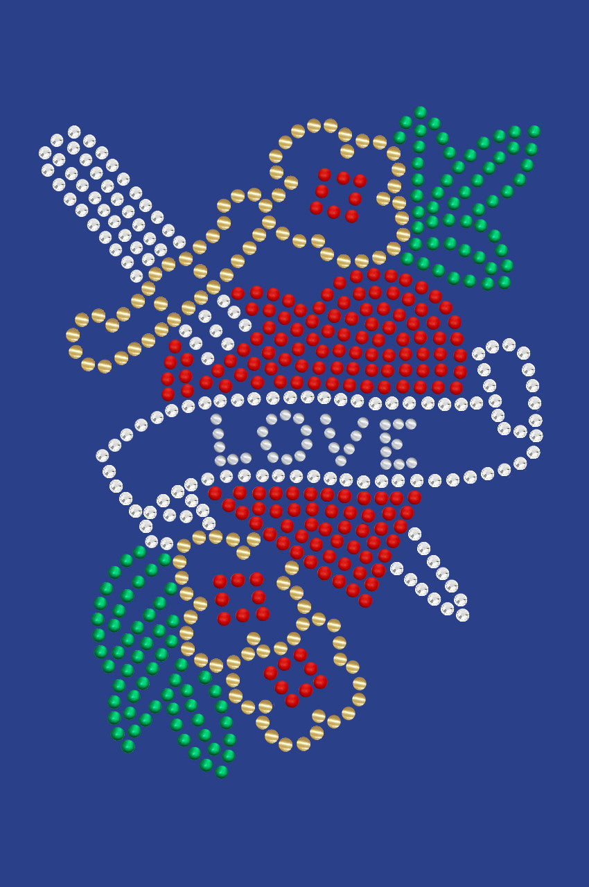 • 3" X 4.5" design with red, gold, silver, green, & clear nailheads & rhinestones.