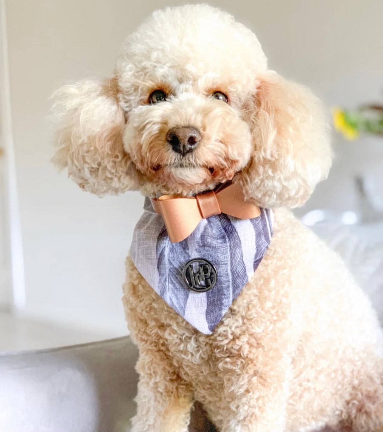 Our scarf fabrics are unique prints that are sourced in exclusive fabric houses and are of the highest quality. Our scarves are hand made here in Australia. HGP' Collection of Scarves are made from 100% cotton and 100% linen/linen blends/Rayon. Our fabrics are durable, comfortable and stylish suitable for any fashion conscious pup. Each scarf comes with a press stud to match the colour of the scarf along with a stylish HGP emblem made from your choice of zinc alloy hardware.