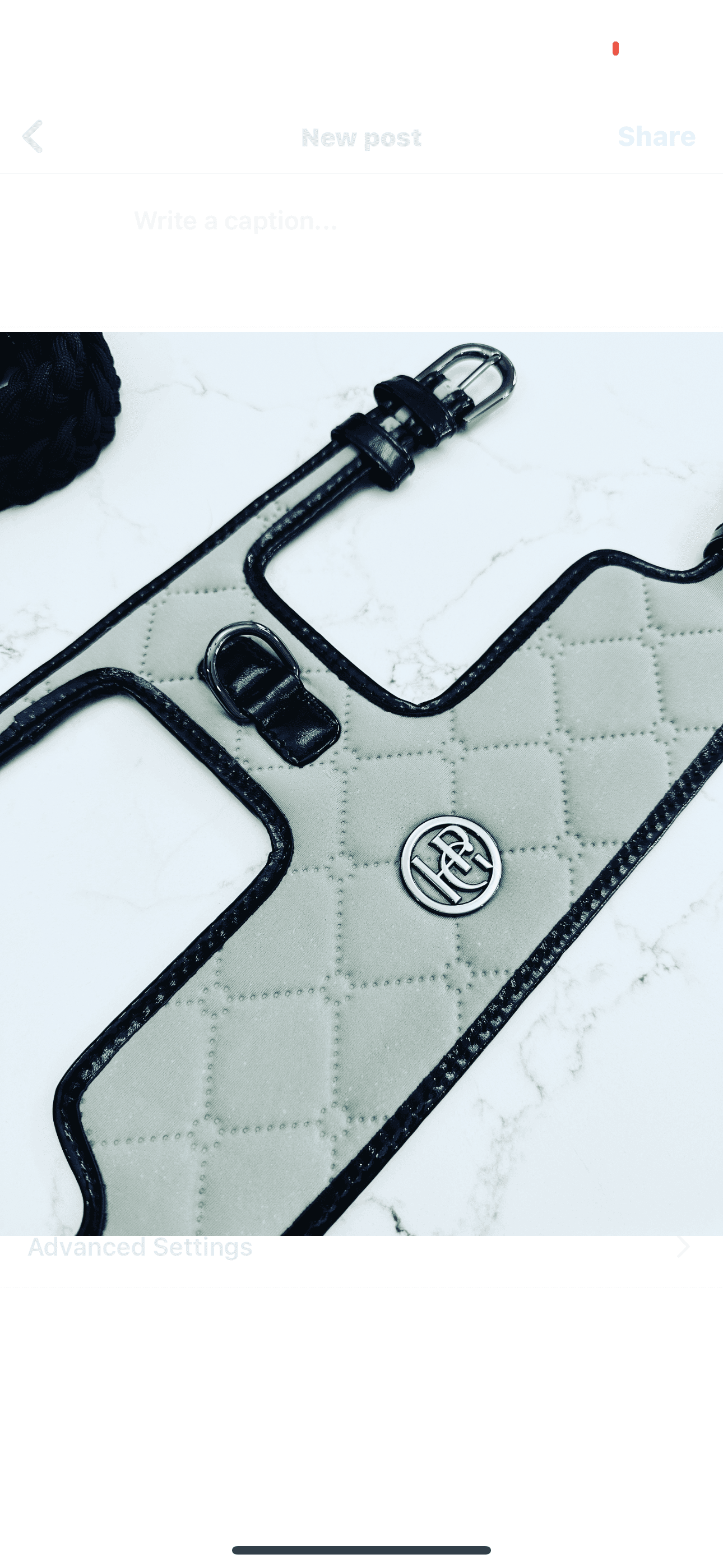 Introducing one of our new harnesses The 'Greyson' - This harness is stylish, versatile and durable. Greg in colour with a fleck/spot of white. Made from high quality neoprene cotton with vegan leather and stylish zinc-alloy hardware buckles (gun metal) fully adjustable, this is certainly a fashion statement that will ensure your furry friend is noticed.
