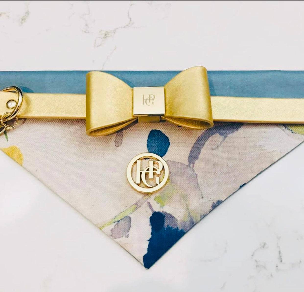 Our scarf fabrics are unique prints that are sourced in exclusive fabric houses and are of the highest quality. Our scarves are hand made here in Australia. HGP' Collection of Scarves are made from 100% cotton and 100% linen/linen blends. Our fabrics are durable, comfortable and stylish suitable for any fashion conscious pup. Each scarf comes with a press stud to match the colour of the scarf along with a stylish HGP emblem made from zinc alloy hardware.