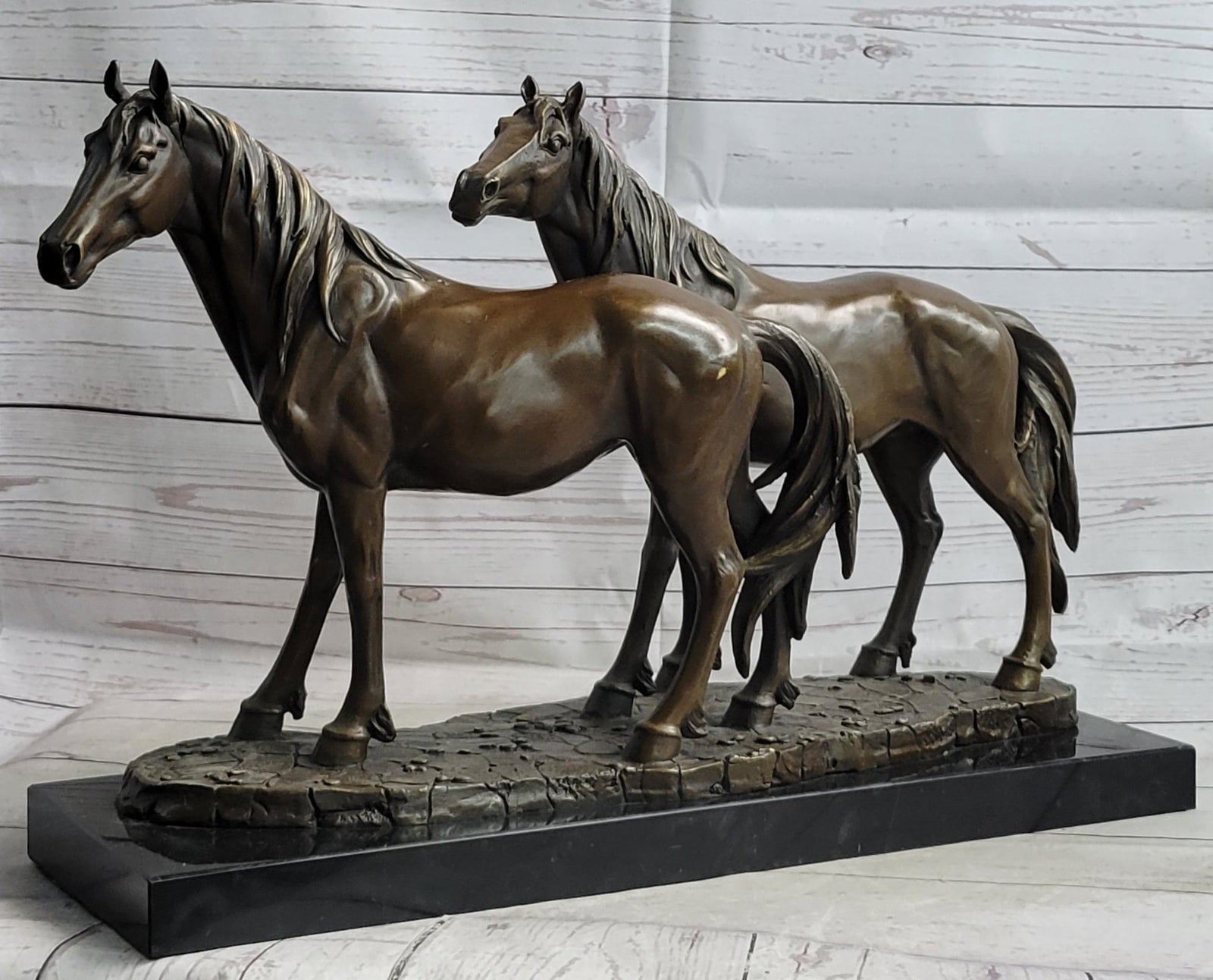 As a symbol of strength, beauty, and companionship, the two horses stand as a striking representation of the relationship between mother and offspring. Whether displayed in your home, office, or art collection, this bronze masterpiece is sure to captivate all who behold it, making it a cherished addition to any decor.