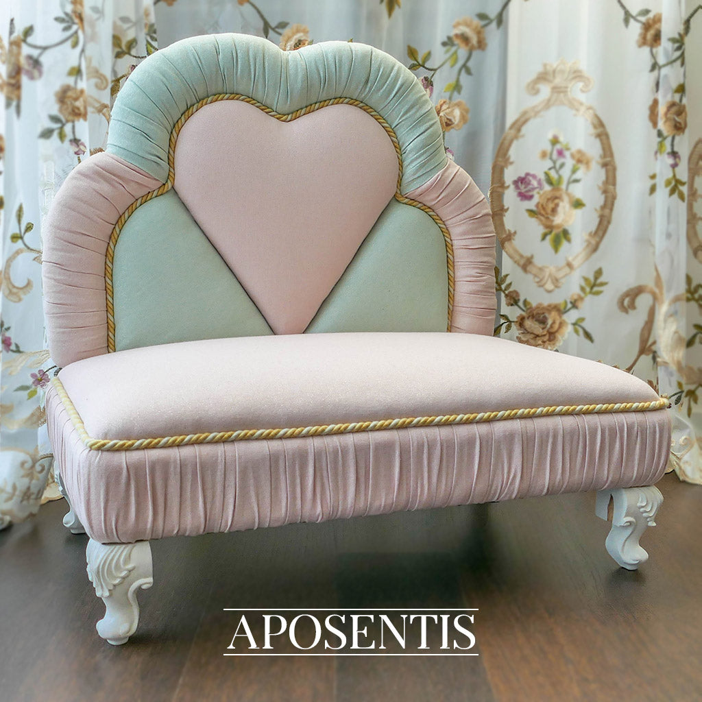 This dreamy, love inspired pet couch is embellished with a heart at the front of the headboard and a cloud at the back. For those who love items that tell a story, each detail of this luxury dog or cat bed is made to delight.
