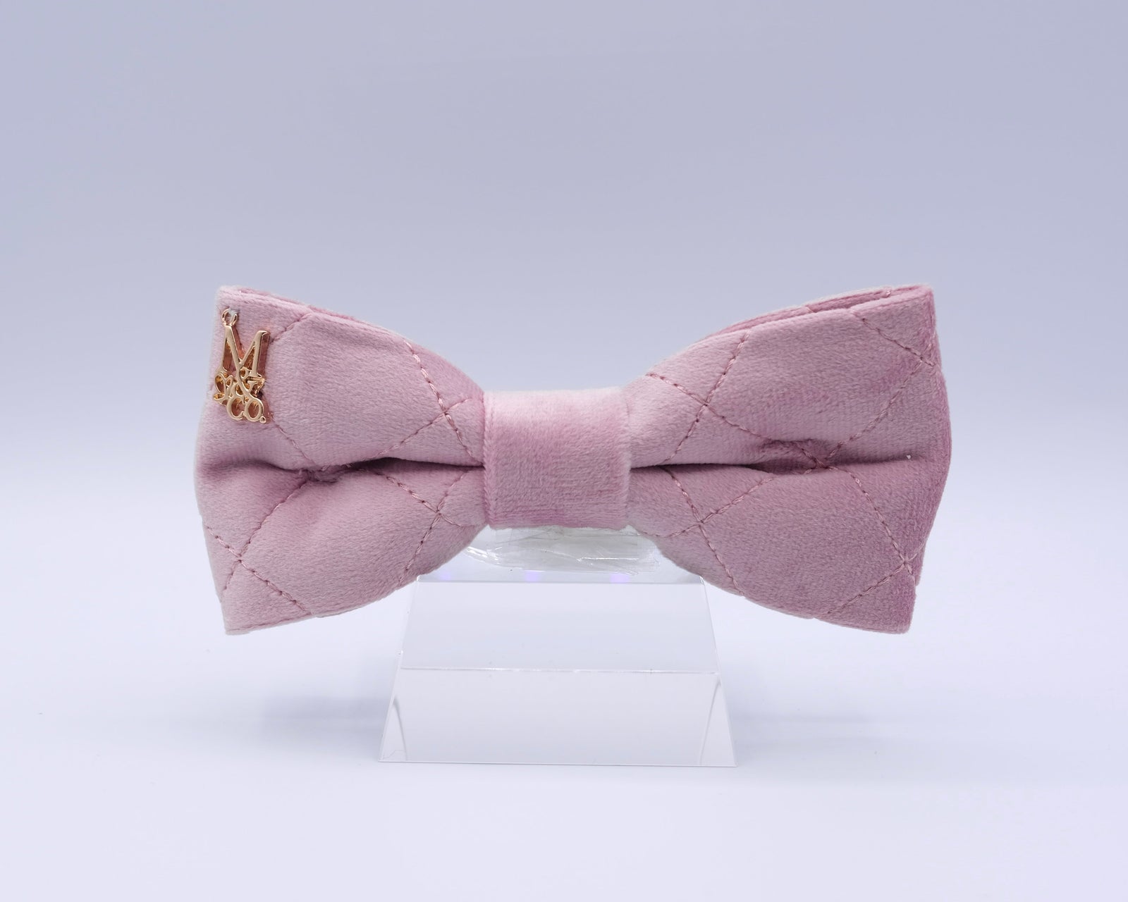 5” bow tie with Velcro elastic band loops to attach to collar. Comes with gold logo charm