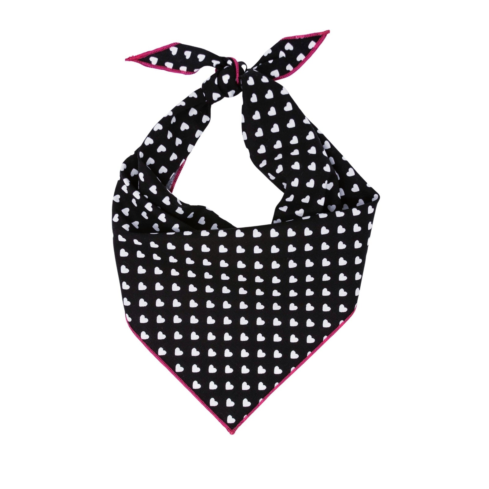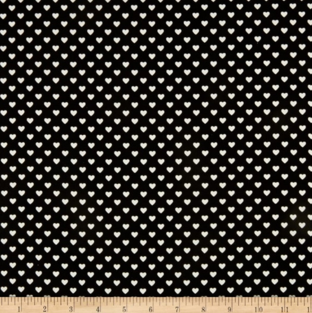 Crisp Black Cotton with White Hearts & Hot Pink Rolled Hem