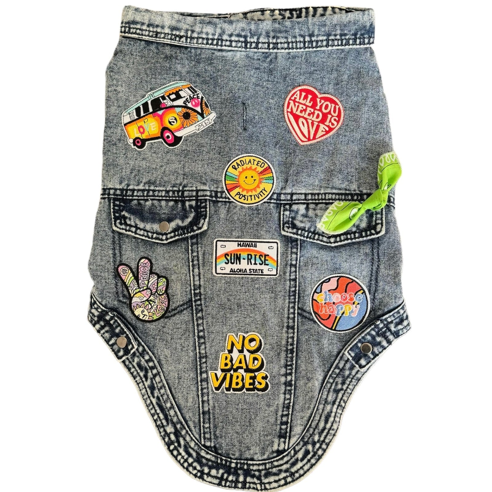 The Wide "Peace Out" Vest comes in 3 sizes and can fit a dog up to 60 lbs. It snaps up in the front of your pup like a hug and has a vibe that you can not beat! Each vest features a colorful bandana knot (color varies). Featuring a buttonhole opening to feed a leash through. Perfect for dog owners who want to spread joy and positivity wherever they go. Trust us, this vest will bring a smile to both you and your pup's face. Please check out the size chart in the last photo!