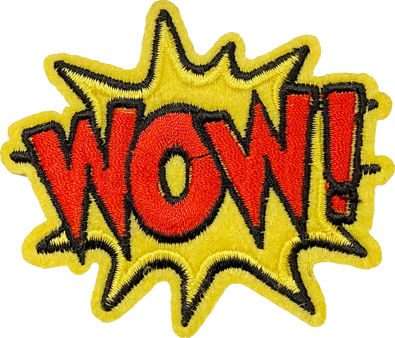 Wow Patchfor Denim Jackets, Vests, and Bandanas. 2.8" X 2.4". Please use our Interactive Designer to see what your patches will look like on your size of garment. Patches may also be purchased separately if you whish to add additional patches to items you already own.