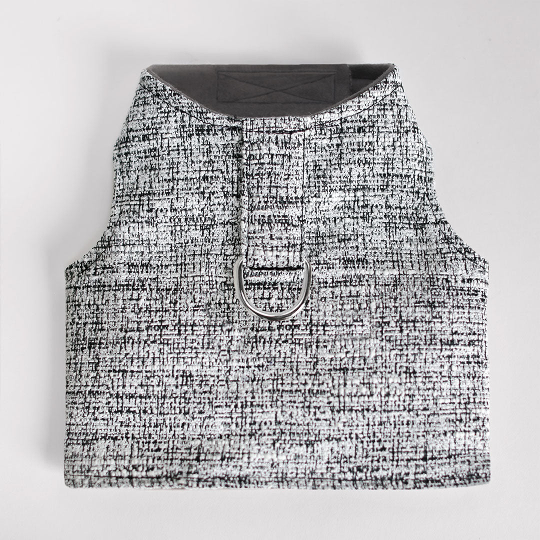 Your precious pooch will look regal in this Zha Zha Dog Harness By Hello Doggie. The beautiful soft tweed blend fabric has a timeless design that is sure to please the eye of any fur baby mom or dad! This harness features adjustable velcro straps for easy wear and a gold d ring that ensures your pup stays safe at all times.